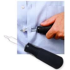 Ensure your daily routine isn’t disrupted by weak hands and use the Good Grips® Button Hook to help you dress independently. Featuring a large rubber handle with flexible ribbing, this button hook is easy to grip and simply hooks around buttons so that you can pull them through the holes in your shirt.
