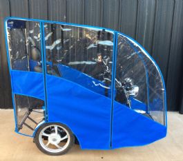 Deluxe style canopies are manufactured in 840 PVC backed nylon, with large zippered roll up doors on both sides of the canopy for easy access either side, but have the added advantage of a roll up back window too, allowing for access to batteries or bags at the rear of the scooter. These doors have attachments at the top for keeping the door up if desired. With full windows at the back and the front, and window panels either side, visibility is not impaired, and scooter lights are still visible for use at night.