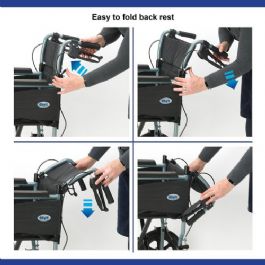 Suitable for indoor and outdoor use, this attendant-propelled wheelchair is an excellent product for occasional use. It weighs just 11.5kg and yet affords a good degree of comfort thanks to padded upholstery, detachable footrests and full length armrests. The attendant propelled brakes are easy to use with a new push down feature to lock brakes in a parking position.