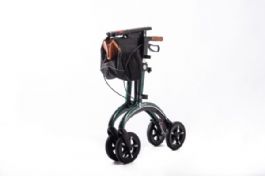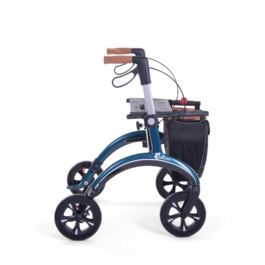 The Saljol carbon rollator weighs only 5.8kg and is easy to manoeuvre, even for people with little muscle power. It is a stable lightweight rollator and has a weight capacity of up to 150kg. Go out for a walk and carry your belongings with you in the supplied bag which can be easily opened and closed with a magnet. When you feel like resting, you can sit down on the integrated seat. The Saljol carbon rollator has soft rubber tyres which are great for smooth and not so smooth terrain. It includes a standard cane holder.