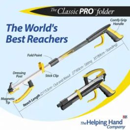 The Classic Pro Folder is a long handled grabber stick. Ideal for elderly, disabled, or indeed, anyone who finds bending and reaching a struggle. The Classic PRO Folder quickly packs into a suitcase, holdall, shopping bag. Wherever you go, no need to ask someone else for help.