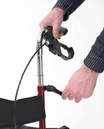 With an attractive, metallic red steel frame, the Tri-Walker with Seat is lightweight and portable, whilst offering stability and security to the user. The handle height can be easily adjusted and the practical loop lock cable brakes can be easily applied.